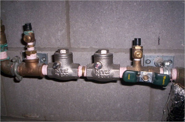 These guys mean well. They did throw in a couple of test cocks, and even a shut off valve on their homemade double check valve backflow preventer.