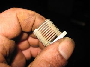 #1 check valve no longer closed as seen in photo #2. Photo #3 shows the new #1 cam check in the closed position. Photo #4 shows the newly installed #2 cam check. Click Photo to Enlarge.