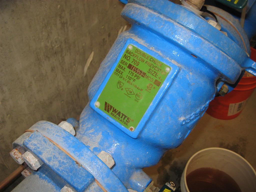 This is a good example of a backflow prevention “device”. Installed in 1990 for a commercial buildings fire service. It is not testable and does not meet current codes.