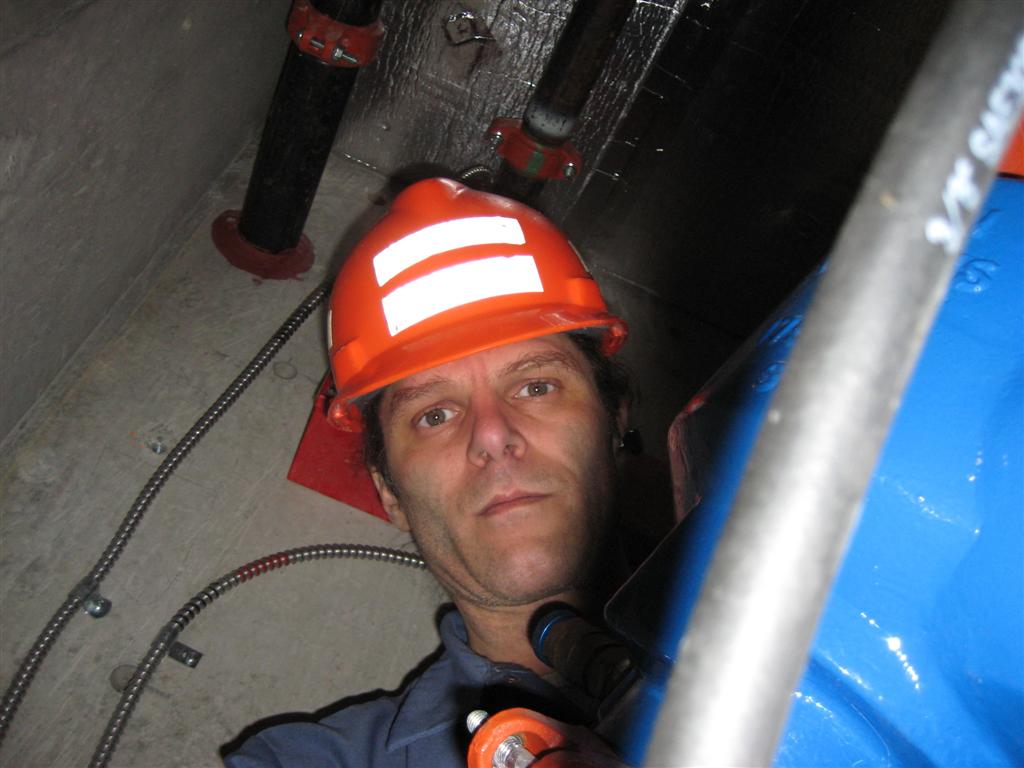 This 4” Wilkins 475 backflow prevention assembly failed the first test so we had to break it down and repair it. I’m the tall one, Solomon is the short one. Click to enlarge.