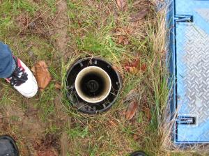We are in the process of pumping out this flooded vault in Fife with a Febco DCDA fire service backflow prevention assembly. Our pump puts out enough water for my son to build waterfalls and have leaf races in the water currant.