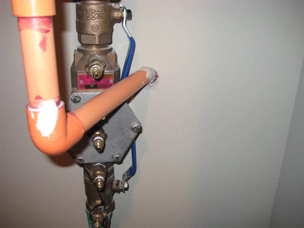 Right: Upon inspection we have discovered plumbing attached to test cock #1 hidden on the back side of this assembly. This had been there for many years. Yet previous Backflow Assembly Testers have either failed to (Inspect) the BPA, or failed to inform the water purveyor if they had.