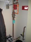 This is not a good sign. Contractors have built tenant storage lockers in front of the backflow prevention device for the domestic water. Door #6 is locked, fortunately unit #7 is unlocked… lets go in and see what we find. Click to enlarge.