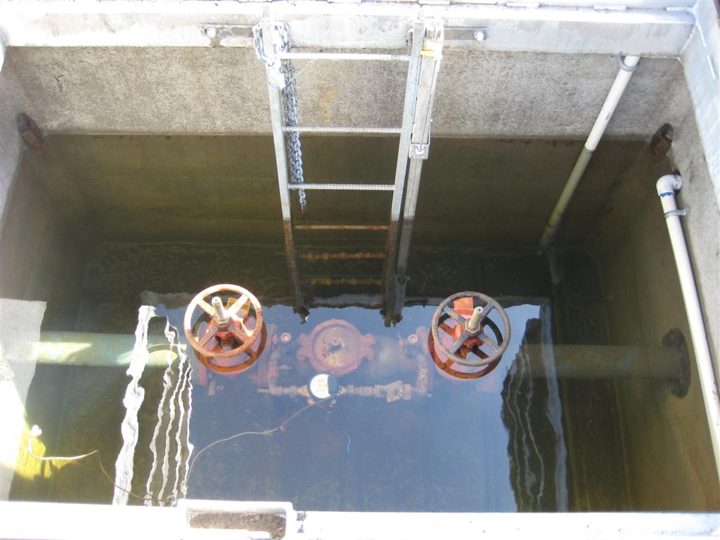 1) The problem with this fire service DCDA backflow prevention assembly in this vault is, it is subject to flooding and test cock caps are not installed on the 4″ backflow assembly. Renton.