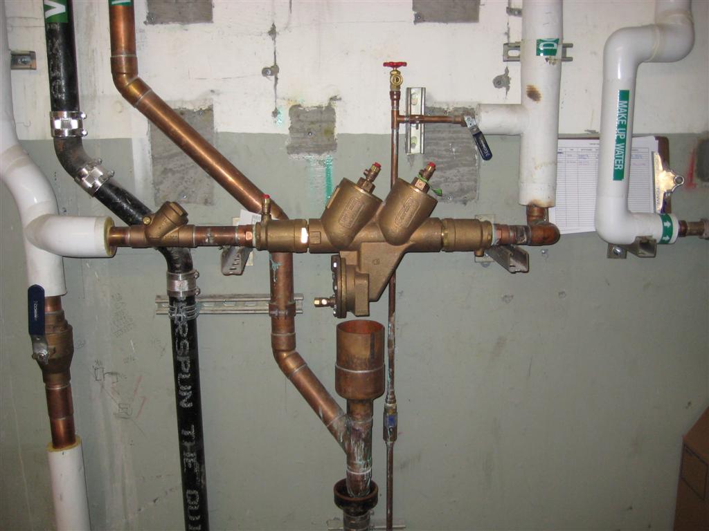 I have included some of the backflow assemblies that Pop’s Backflow Service tests and maintains here. It’s rare to be able to access all the backflow assemblies in a building of this size without having climb over, under, or into something.    Click to Enlarge.